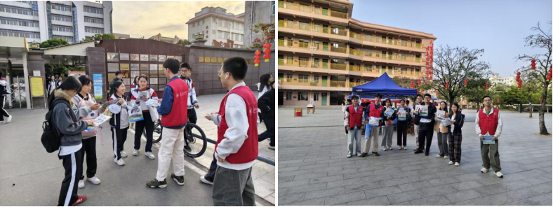 2026年2月8日上午,实践队来到了化州市实验中学,队员们坚守宣传点位,面向放学时段的学生开展不定点宣讲。队员们通过发放资料、现场解读、一对一答疑等方式,持续向同学们介绍学校基本情况、招生政策、升学路径与就业前景,确保宣传信息精准触达更多学子,进一步扩大宣传影响力。