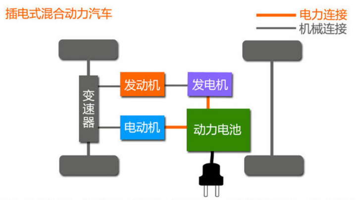 并联式混合动力汽车(PHEV:车辆的驱动力由电动机及发动机同时或单独供给的混合动力(电动)汽车。结构特点是并联式驱动系统可以单独使用发动机或电动机作为动力源,也可以同时使用电动机和发动机作为动力源驱动汽车行驶。
