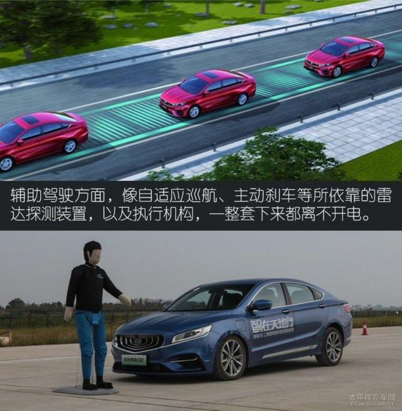 在一些辅助驾驶方面,也都使用电气化驱动,像自适应巡航、主动刹车所依靠的摄像头以及雷达探测装置,在执行机构油门刹车的电机,一整套下来都离不开电。
