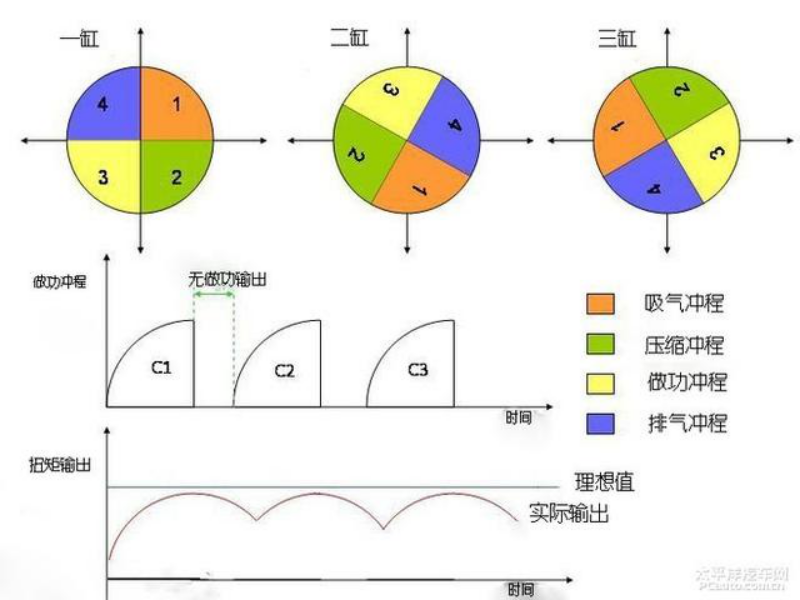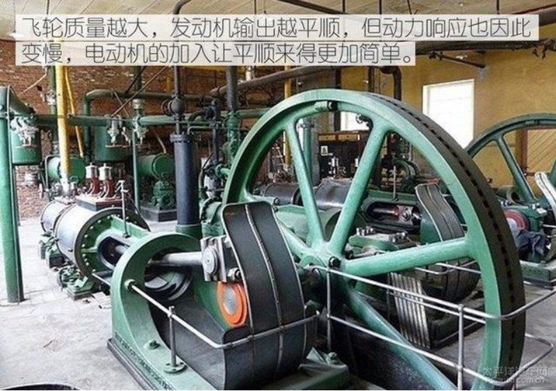 传统内燃机一个做功周期内,只有点火做功冲程有扭矩输出,但整个做功周期中,活塞从上止点运动到下至点的过程,作用在曲轴上的扭矩是不断衰减的,这也是发动机气缸越多运转越平顺的原因。在以往,我们想让输出变得平顺,通常是曲轴上串联一个大质量飞轮,但质量越大的飞轮对发动机动力的响应性影响也就越大。