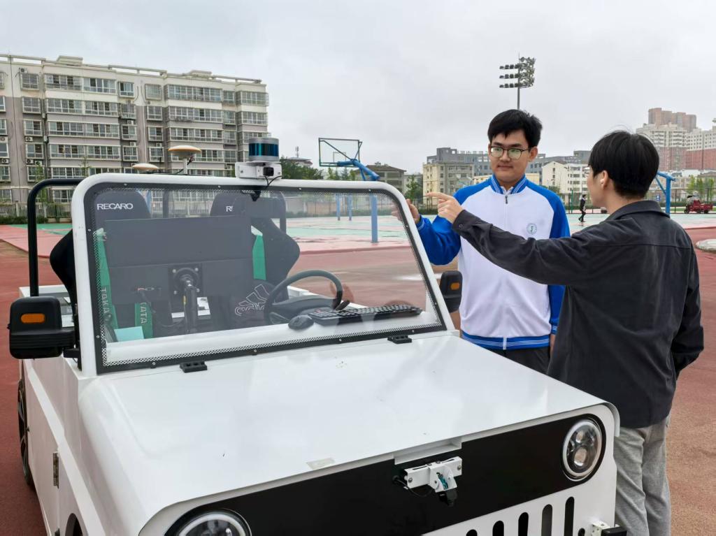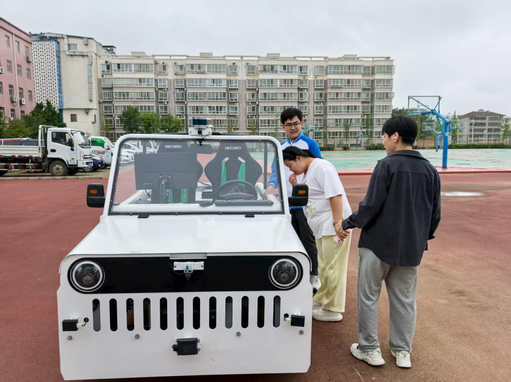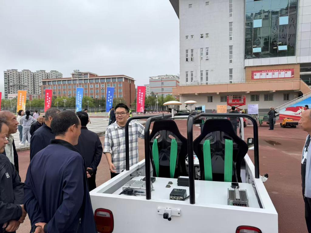 2025年9月12日上午,交通运输学院老师李子卓带领吉新星社团成员,携智能网联车教学设备前往千阳县体育场。