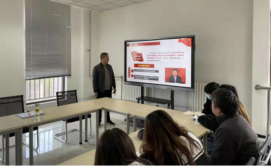 李靖带领大家学习中共中央办公厅国务院办公厅印发的《关于推动现代职业教育高质量发展的意见》(以下简称《意见》)文件精神。