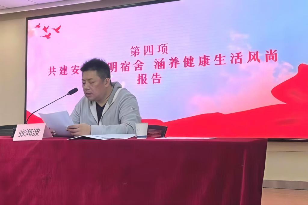 校公寓管理科科长张海波做《学生宿舍内务卫生检查--共建安全文明宿舍 涵养健康生活风尚》为题的报告讲座。他从学生处公寓管理科宿舍安全、卫生、内务检查标准和重点问题说明这两个方面展开解读,让同学们明确宿舍内务检查的标准,也为学院宿舍后续提质增效提供了抓手。