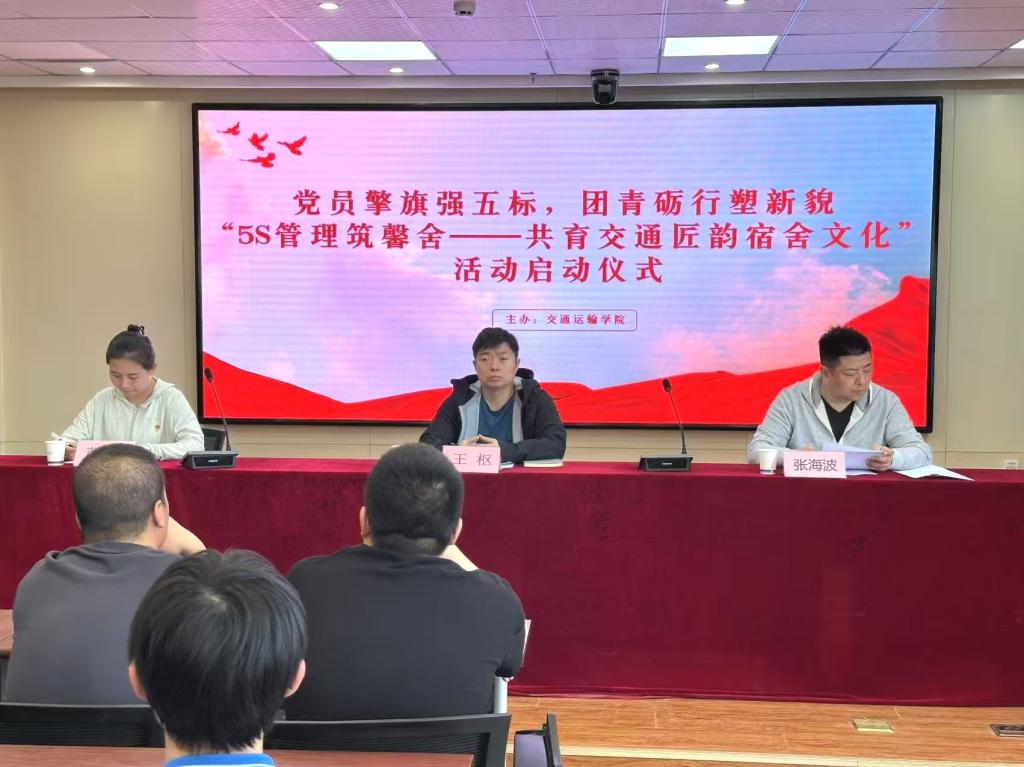 4月21日下午,交通运输学院于宝福路校区汽车机电大楼四楼会议室,成功举办“党员擎旗强五标,团青砺行塑新貌‘5S管理筑馨舍——共育交通匠韵宿舍文化’”活动启动仪式。交通运输学院党支部书记王枢、校公寓管理科科长张海波、学生工作办公室主任董妍、各班班主任、团青先锋队成员及各班参会代表等齐聚于此,共同拉开活动序幕。