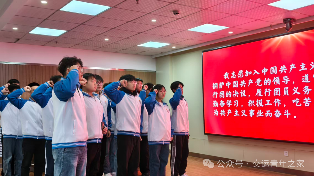 一枚团徽,一份荣光;一句誓词,一生坚守。为凝聚青年力量,筑牢信仰根基,12月25日下午,交通运输学院2025年下半年新团员入团仪式于汽车机电大楼405视频会议室隆重举行。团总支书记董妍,团总支副书记曹军霞,学工办干事高瑞珧出席仪式,与全体新团员共同见证这一庄严时刻。仪式由团总支副书记李月阳主持。