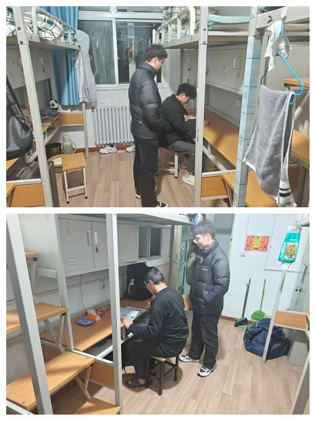 为切实做好考试周校园安全管理工作,营造安全、有序、高效的期末备考氛围。1月5日——1月6日晚,交通运输学院值班干部董妍老师、值班教师韩雪老师以及公寓值班教师杨勇志老师深入学生宿舍,开展安全隐患排查与期末学习督促工作。