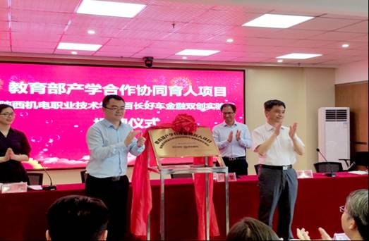 黄修鲁执行官感谢学院对于产教深度融合项目的大力支持,对陕西机电职业技术学院汽车类专业学生就汽车服务和汽车电商的新变化、新发展、新趋势进行了深度的剖析,对汽车营销、汽车服务、汽车金融等方面岗位需求的新要求进行了详细的讲解。随后黄修鲁执行官分别与张新堂副院长、张琴副院长为“教育部产学合作协同育人项目陕西机电职业技术学院百长好车金融双创实验室”、“中国电子商务协会汽车行业分会百长好车金融双创实验室”举行了揭牌仪式,这标志着“汽车商务管理师培养基地”建设在陕西机电职业技术学院正式扬帆。