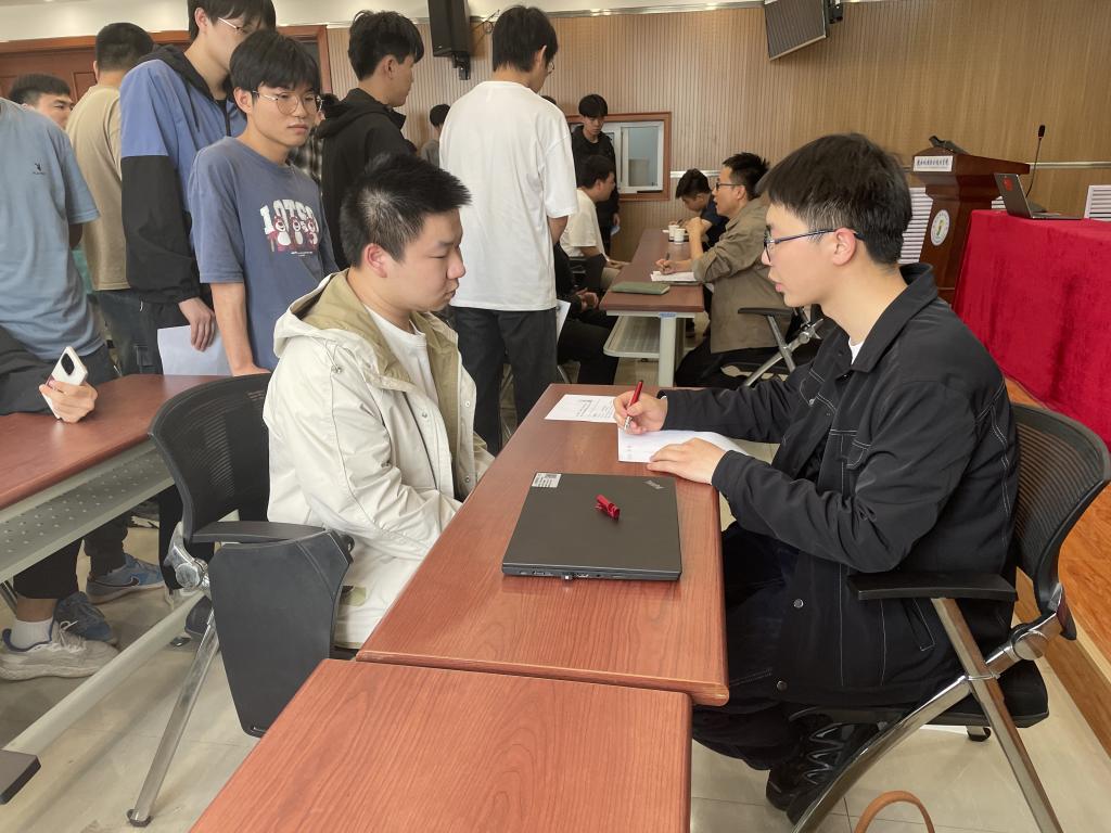 宣讲会结束后,随即组织面试环节。同学们提前精心准备个人简历,在面试中学生们竞相展示在校期间的学习成绩、参与的实践项目经历以及对加入吉利汽车的强烈渴望与炽热激情。