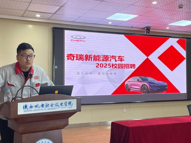 宣讲会上,奇瑞新能源汽车股份有限公司向同学们全方位展示了企业魅力。作为新能源汽车行业的先锋力量,奇瑞新能源凭借创新驱动,不断在行业内实现突破,以 “创新、责任、共赢” 为核心价值观的企业文化,彰显着企业的活力与担当。