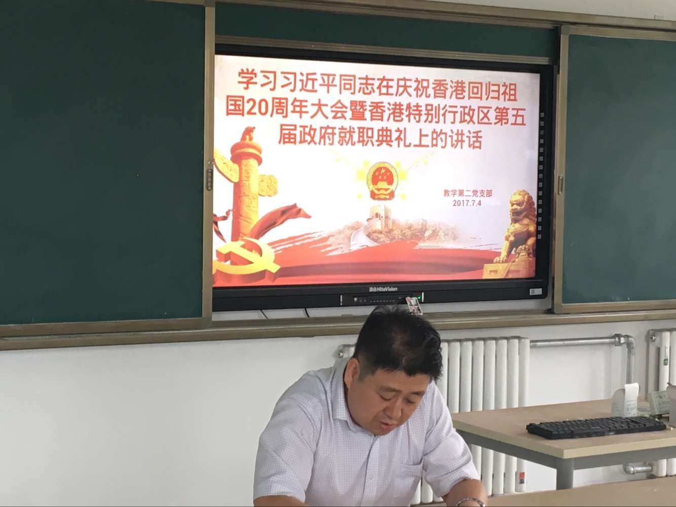 2017年7月4日下午,教学第二党支部在汽车机电大楼310教室召开支部党员学习会,支部书记罗亚军同志就“五个扎实”和习近平同志在庆祝香港回归祖国20周年大会暨香港特别行政区第五届政府就职典礼上的讲话进行深入解读。