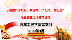 汽车工程学院党支部于2020年9月17日,在汽车机电大楼206党员活动室召开了支部会议。会议主要目的是落实纪律教育宣传月,本次集中学习以“守初心、践使命、严纪律、勇担当”为主题。