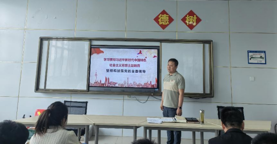 交通运输学院党支部书记李靖讲授《坚持和加强党的全面领导》。李靖从关税收入、盐税收入、统税收入三个方面讲授国民党为什么是反动政府。指出中国有了中国共产党执政,是中国、中国人民、中华民族的一大幸事。只要我们深入了解中国近代史、中国现代史、中国革命史,就不难发现,如果没有中国共产党领导,我们国家、我们民族不可能取得今天这样的成就,也不可能具有今天这样的国际地位。