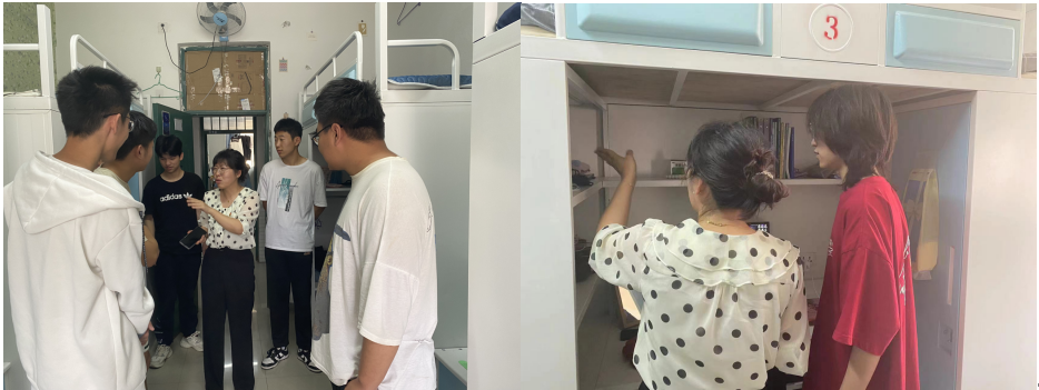 在推进校园文化建设和提升学生综合素质的大背景下,交通运输学院近日开展了“宿舍文化内涵提升”活动。该活动以党建带团建,以党建为引领,团学组织积极响应,并将汽车行业5S管理标准纳入宿舍内务整理要求,旨在面对面和学生一起进行内务整理,完成安全排查,教会学生怎样打扫卫生,整理内务。通过这种教育与实践相结合的方式,将5S管理理念融入学生的日常学习和生活中,培养学生的良好生活习惯,提升学生的自我管理能力,营造积极向上、富有专业特色文化内涵的宿舍小环境,进一步提升全院宿舍文化内涵建设氛围。本专题活动的第一站走进23新能源1班的学生宿舍。