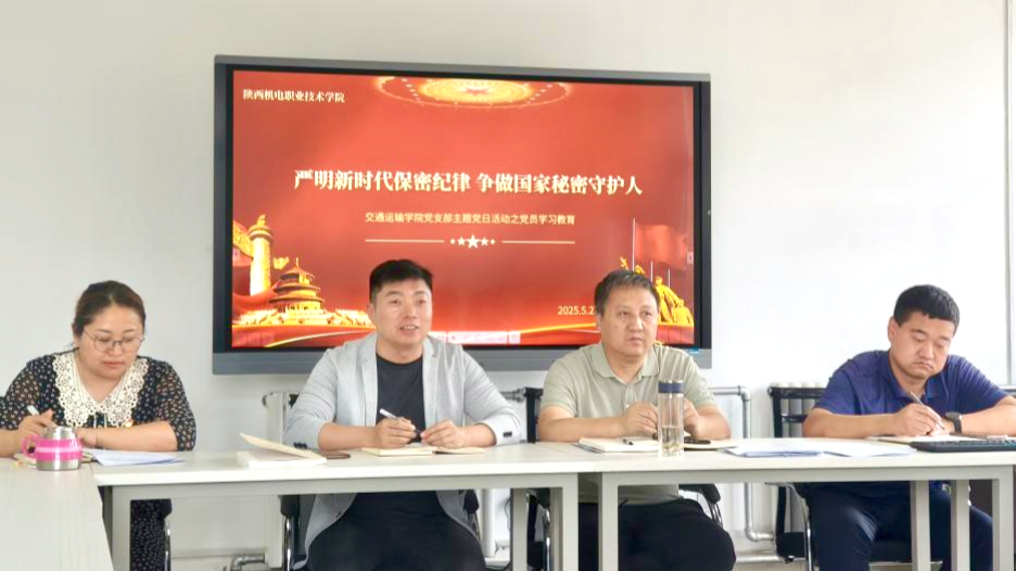 为进一步加强保密教育,提升党员及入党积极分子的保密意识,2025年5月27日下午,中共陕西机电职业技术学院交通运输学院党支部在机电大楼206室精心组织开展了“严明新时代保密纪律·争做国家秘密守护人——学习贯彻新保密法及其实施条例”主题党日活动。支部全体党员及学生入党积极分子共47人参加,本次活动由宣传委员张婷主持。