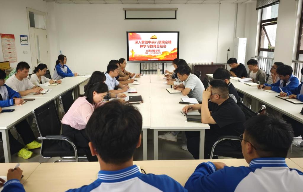 2025年9月17日16:00,交通运输学院党支部在汽车机电大楼206会议室召开深入贯彻中央八项规定精神学习教育总结会。学院党支部全体教师党员、学生党员、发展对象及入党积极分子共26人参加了此次会议。