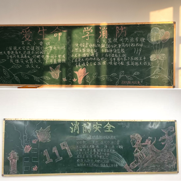 各班级通过办黑板报的形式,进行消防安全知识的宣传,使学生时刻提高安全意识。