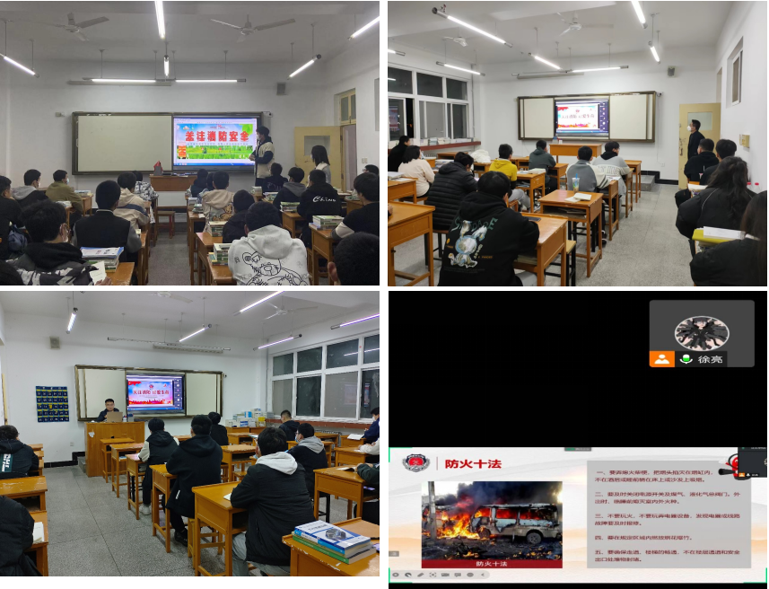 学院各班辅导员和班主任老师,通过采取线上线下相结合的方式,组织开展了“消防安全”主题班会。进行火灾警示、消防法律责任以及逃生常识宣传,营造浓厚的消防安全宣传氛围,推动消防责任有效落实。