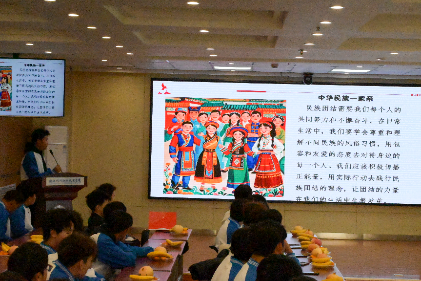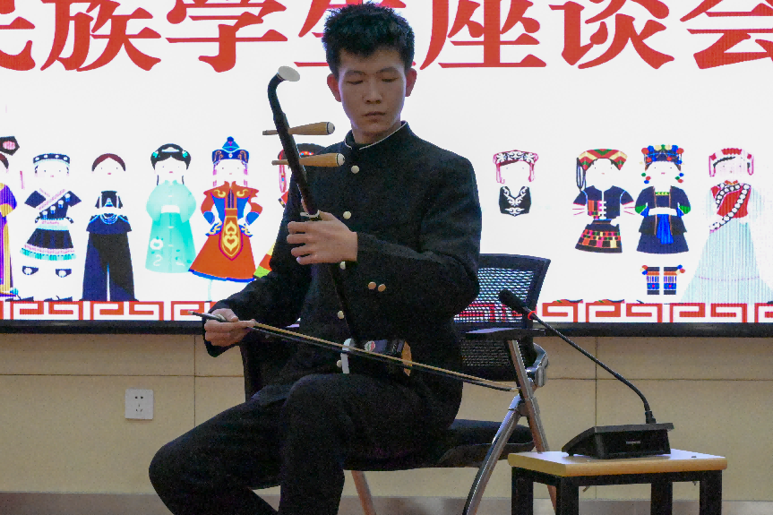 会上,回族学生代表沙霄迪汇报了延安研学情况,藏族学生代表白玛旺青展示了藏族文化和习俗,维族学生代表阿卜杜拉展示了维吾尔族文化和习俗,少数民族学生代表还进行了歌曲和二胡等民族特色歌曲展示。与会领导还与参加座谈会的学生进行了座谈交流,了解学生在校期间的学习生活情况。