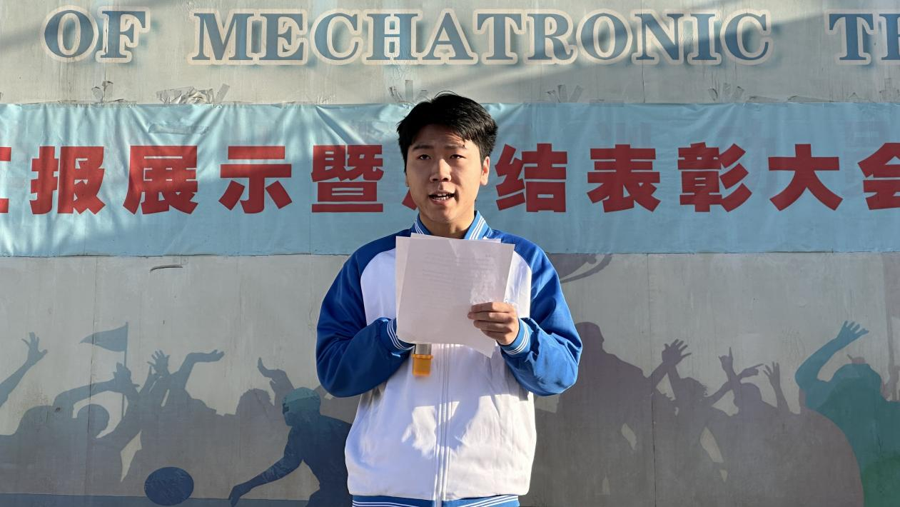 24新能源5班李健以《弘扬志愿精神,传递青春温暖》为主题做国旗下演讲。