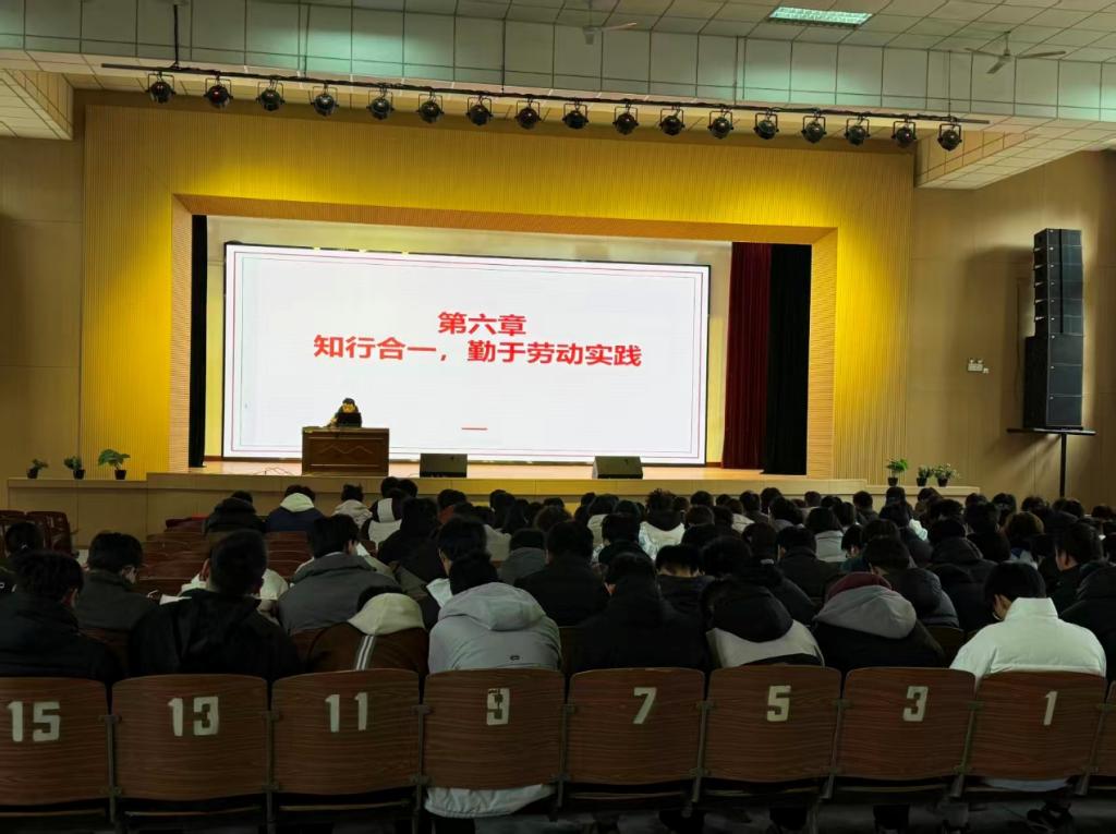 为了培育劳动精神,锤炼实践本领,塑造时代青年品格。交通运输学院李月阳老师于 12月24日在宝福路校区大礼堂开展劳动教育主题讲座。25汽车检测1班、25汽车检测2班、23机电五年1班、23机电五年2班、23汽制五年班,共有140名学生参与讲座。