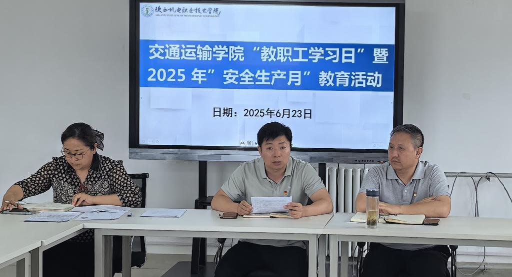 最后,开展2025年安全生产月专题学习,王枢领学《习近平总书记关于安全生产的重要论述和重要指示批示精神》强化全体教职员工的安全意识。冯秋佳领学《陕西机电职业技术学院2025年“安全生产”活动实施方案》。学院全体教师观看了《2025年安全生产月事故警示教育片》,通过真实案例警示全体教职工重视安全生产。