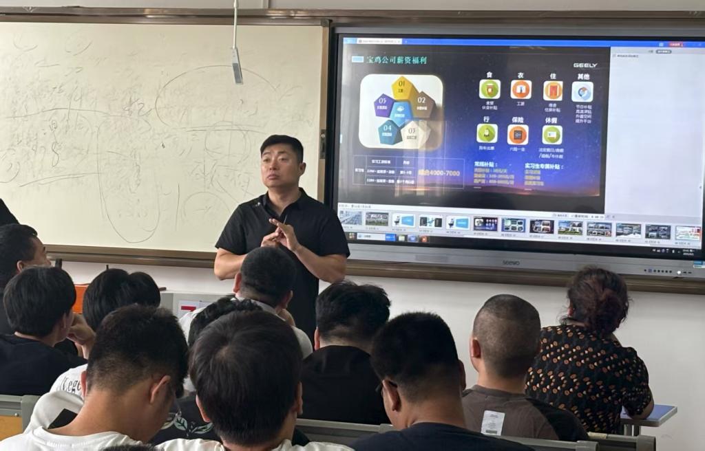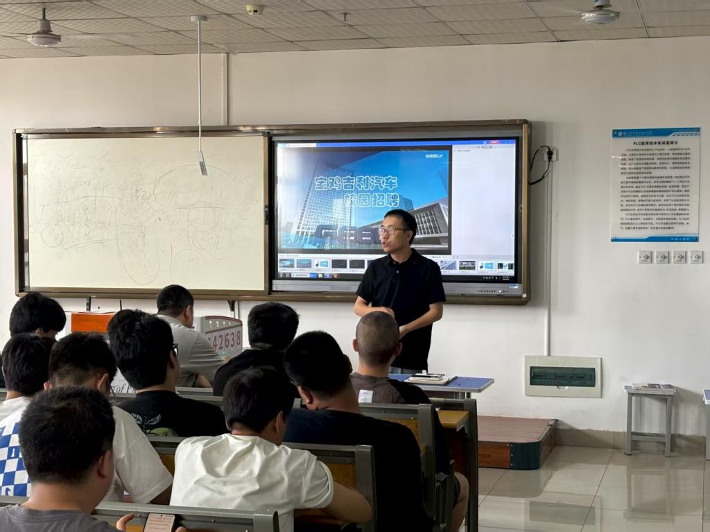 宝鸡吉利汽车部件有限公司代表全面介绍企业概况、实习岗位设置、福利待遇及生活保障措施,企业代表表示,“实习不仅是实践锻炼,更是职业发展的起点,希望同学们珍惜机会,主动融入团队。宣讲结束后为现场学生解答了关于工作内容、住宿环境等问题。