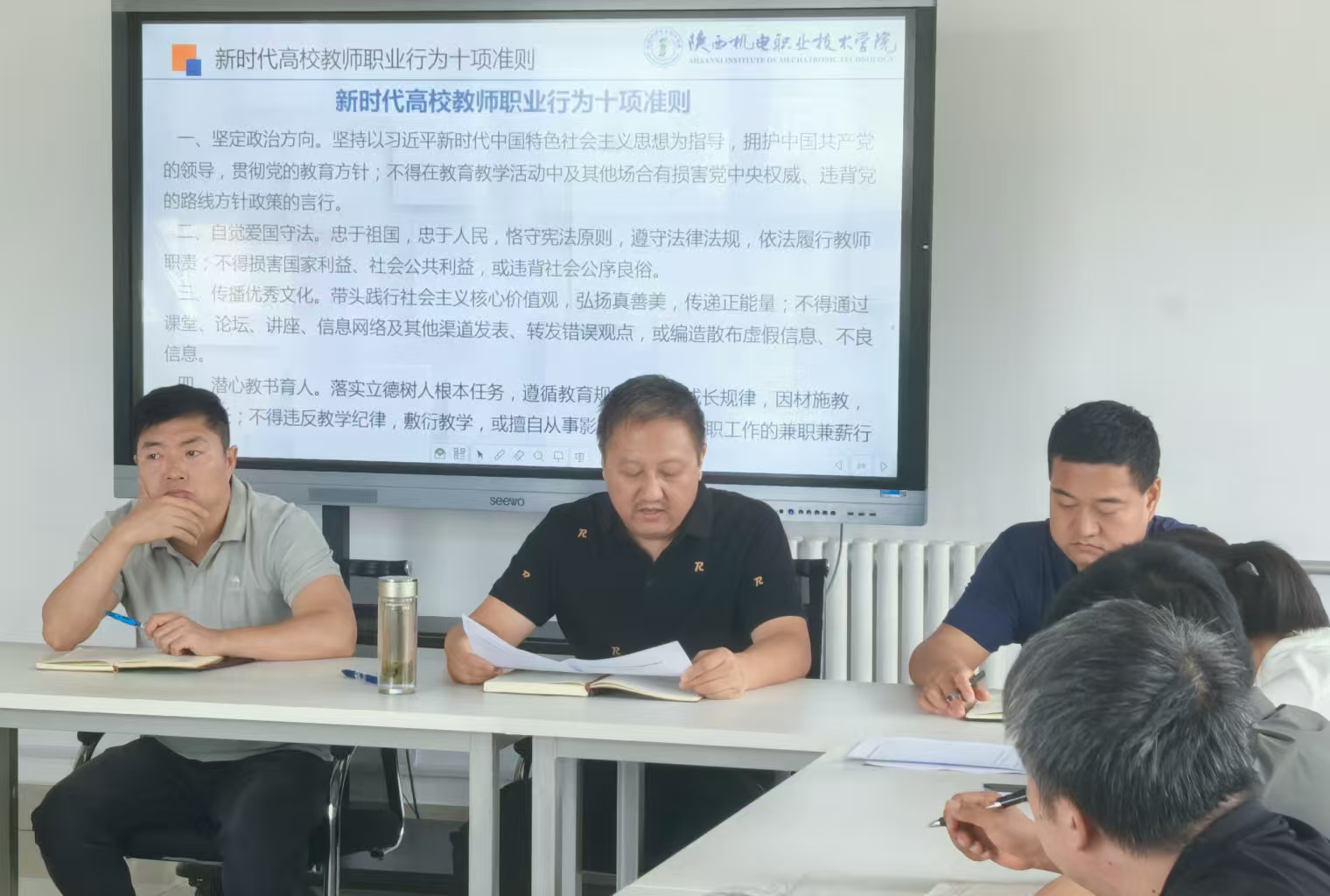 会议伊始,院长李靖带领全体教职工深入学习《新时代高校教师职业行为十项准则》,结合学院实际工作,强调教师要严守师德规范,筑牢思想防线。同时,重点强调了新生学平险的购买,指出学平险是保障学生安全、减轻家庭风险的重要举措,要求全体教师加强宣传引导,确保新生参保全覆盖。