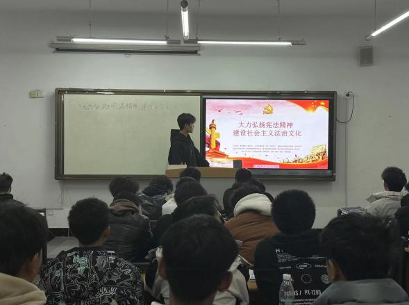 活动中,各班通过观看有关视频和PPT,了解了中国宪以及宪法所确立的国家根本制度、根本任务、基本原则、活动准则和习近平法治思想等内容。