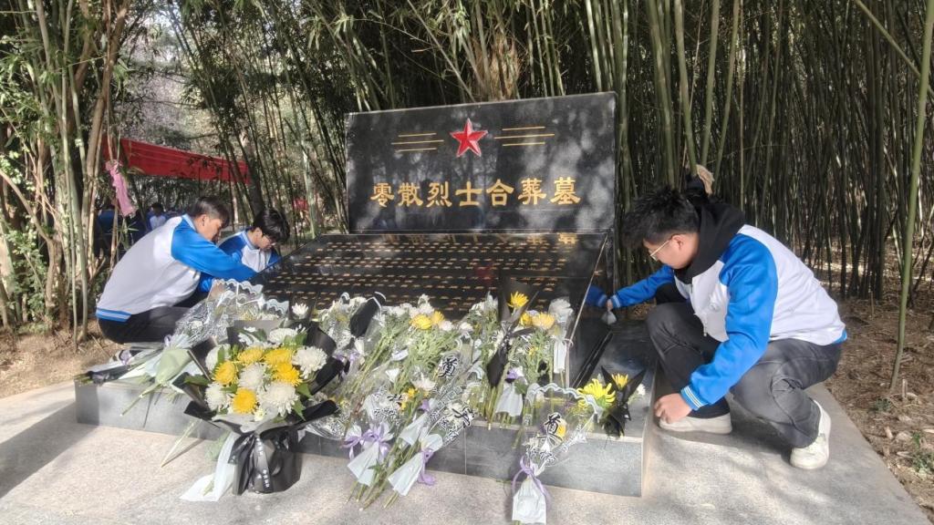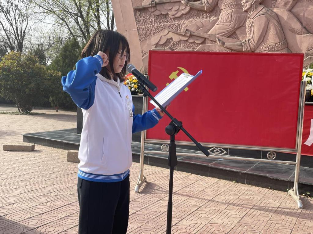 活动伊始,师生共同奏唱《中华人民共和国》国歌,全体人员在庄严肃穆的纪念碑前向烈士默哀。随后,学生代表向烈士纪念碑敬献花篮,所有人员向烈士三鞠躬,深切表达对烈士的崇高敬意和深深悼念之情。最后,由学生代表张辰瑕同学带领全体团员重温入团誓词。