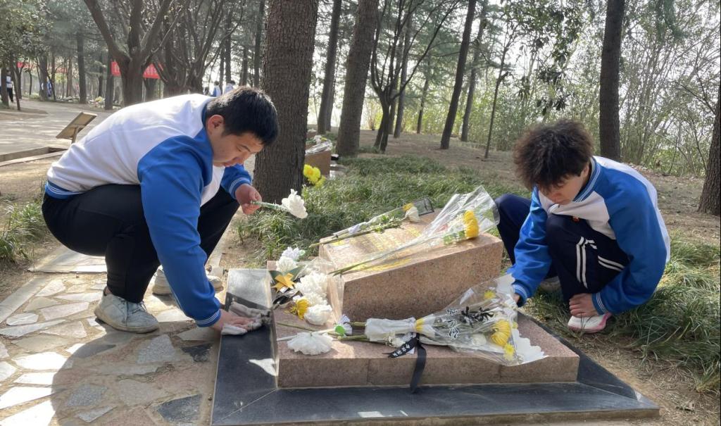 青山埋忠骨,翠柏勉英魂,祭奠完后,全体师生来到烈士陵园,仔细瞻仰并擦拭每一座烈士的墓碑,清理周围的杂草,清扫落叶,以此表达对革命先烈的无限哀思和敬仰之情,烈士陵园整体变得更加庄严和肃穆。