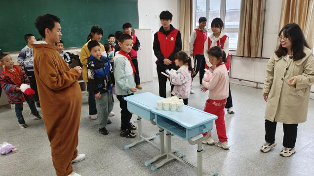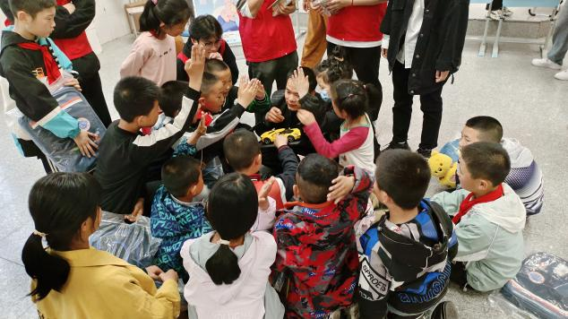 温馨陪伴找童真。为了深入了解留守儿童的生活和学习情况,志愿者与小朋友进行组队,开始谈心交流,建立友谊。同时,志愿者为小朋友们表演了精心准备的节目,与他们进行互动,一起做游戏,给小朋友们带来欢声与笑语,通过互动游戏让孩子们在学中玩、玩中学,营造友好、互助的成长环境。