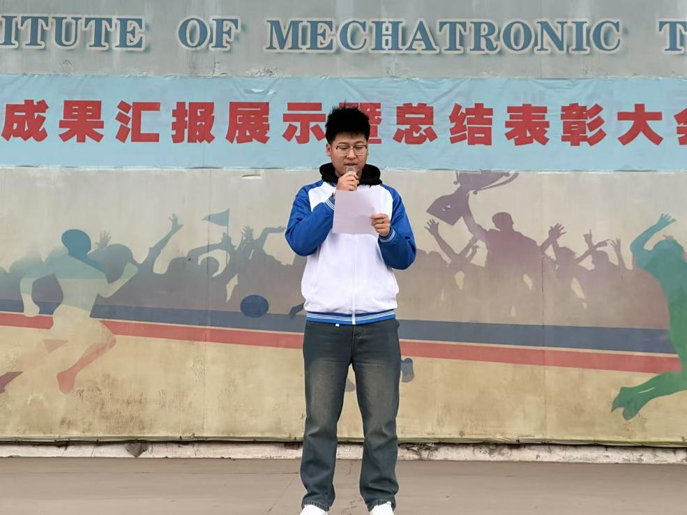 24新能源4班王学良同学以《新起点,新征程》为主题做国旗下演讲。