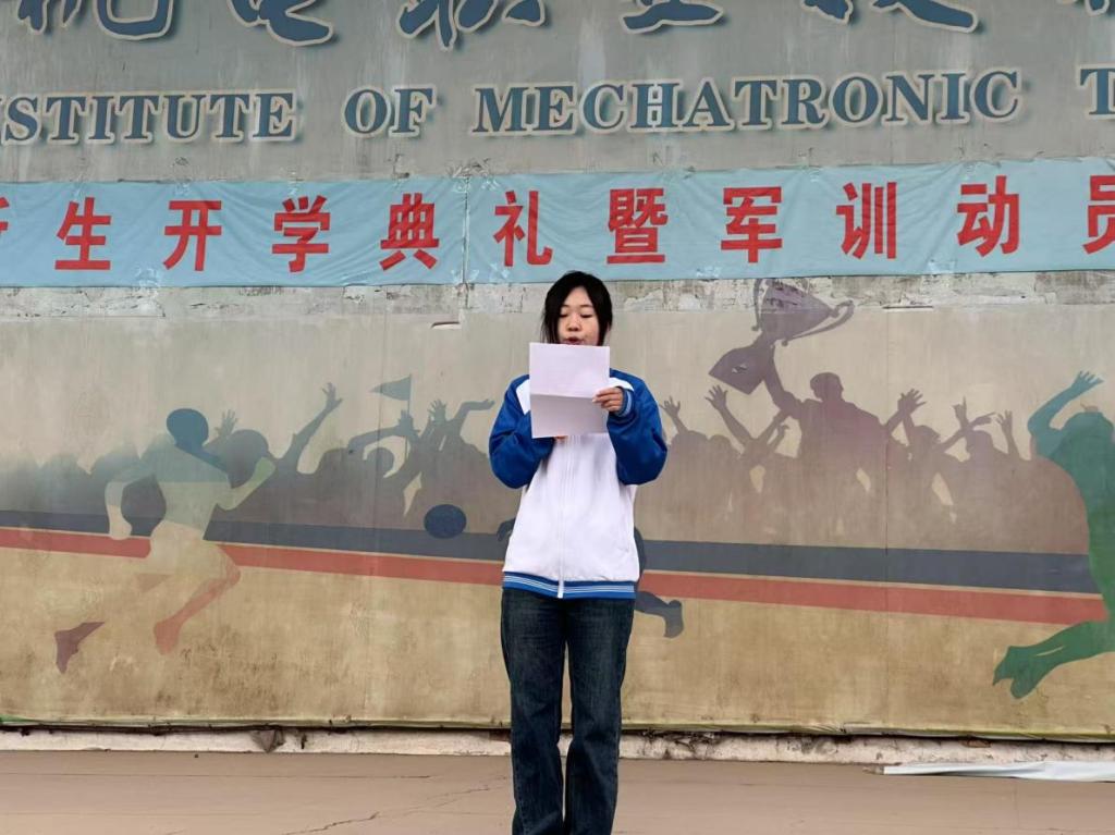 随后,24新能源3班刘文璇同学以《以书为翼,翱翔青春》为主题作国旗下演讲,她呼吁广大同学要以书为友,在阅读中汲取养分,提升自我,以知识为羽翼,向着梦想的天空奋力翱翔。