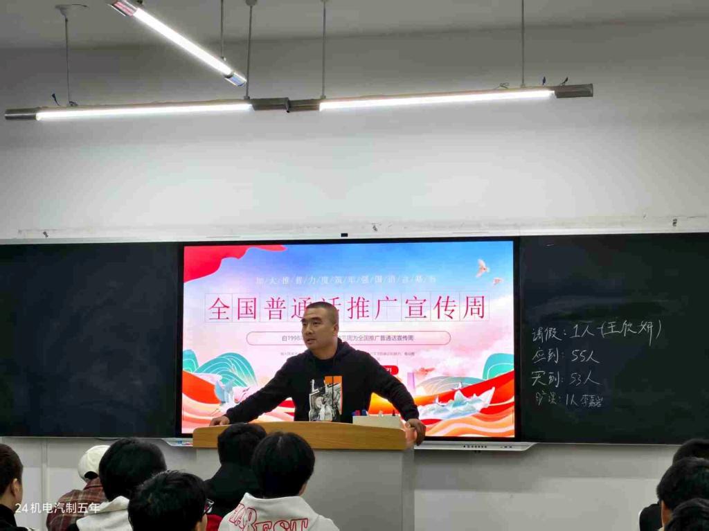 为深入贯彻国家语言文字工作方针政策,全面落实《教育部等九部门关于开展第28届全国推广普通话宣传周活动的通知》精神,近日,交通运输学院组织各班级开展了以“推广普通话,奋进新征程”为主题的班会活动,扎实推进普通话推广工作。