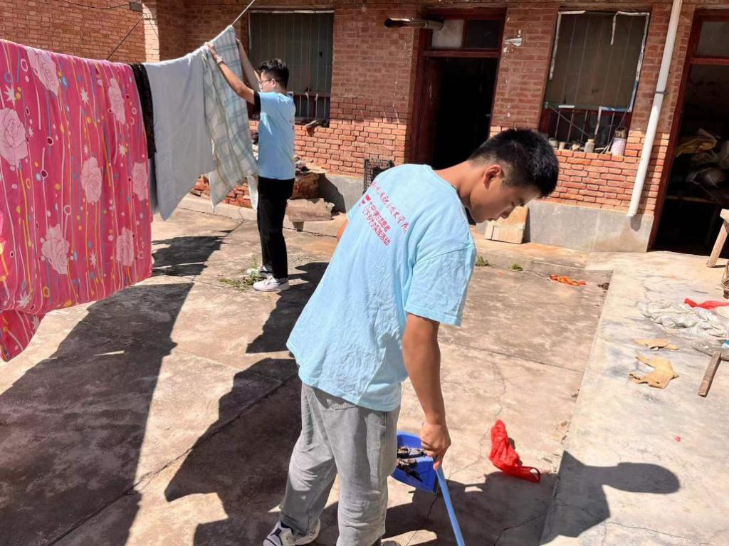 做力所能及,感人间温情。团队成员在下乡期间自备打扫工具,帮助留守老人打扫庭院卫生、擦拭屋内玻璃、晾晒被子等,让庭院、房间焕然一新,在留守老人的生活中增添一份热闹,还给老人一份愉悦的心情。