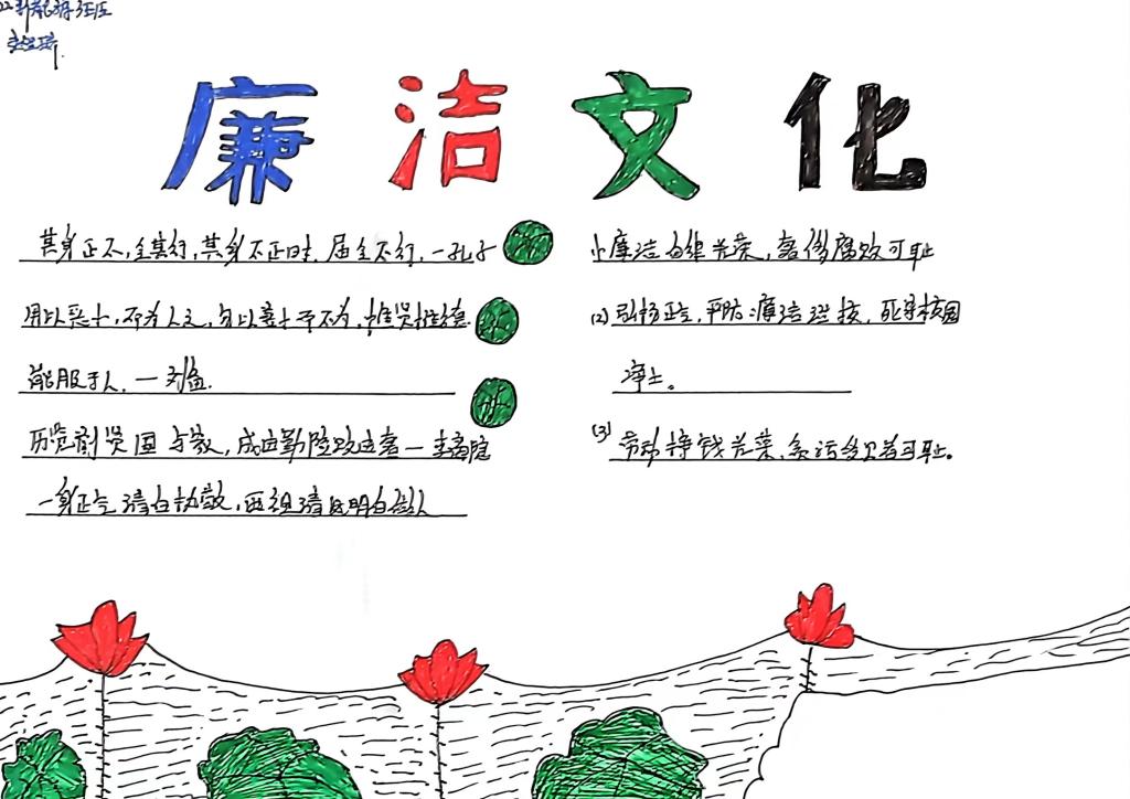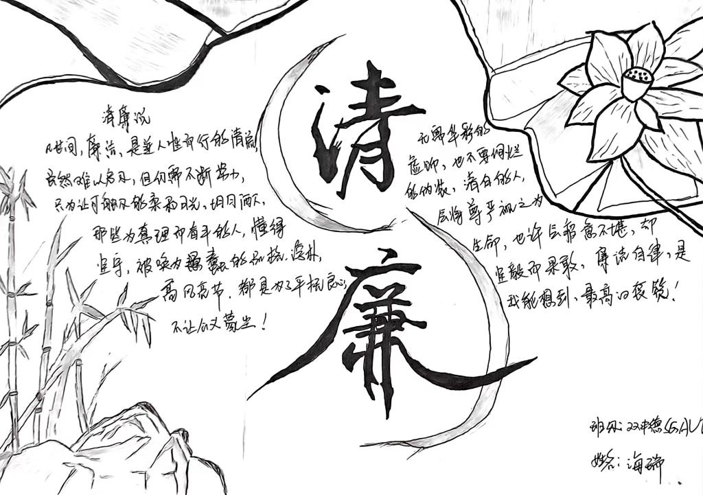 各班围绕“廉洁在我心,清风伴我行”主题,以主题班会、播放相关视频、制作手抄报、提交书法作品等形式开展活动。