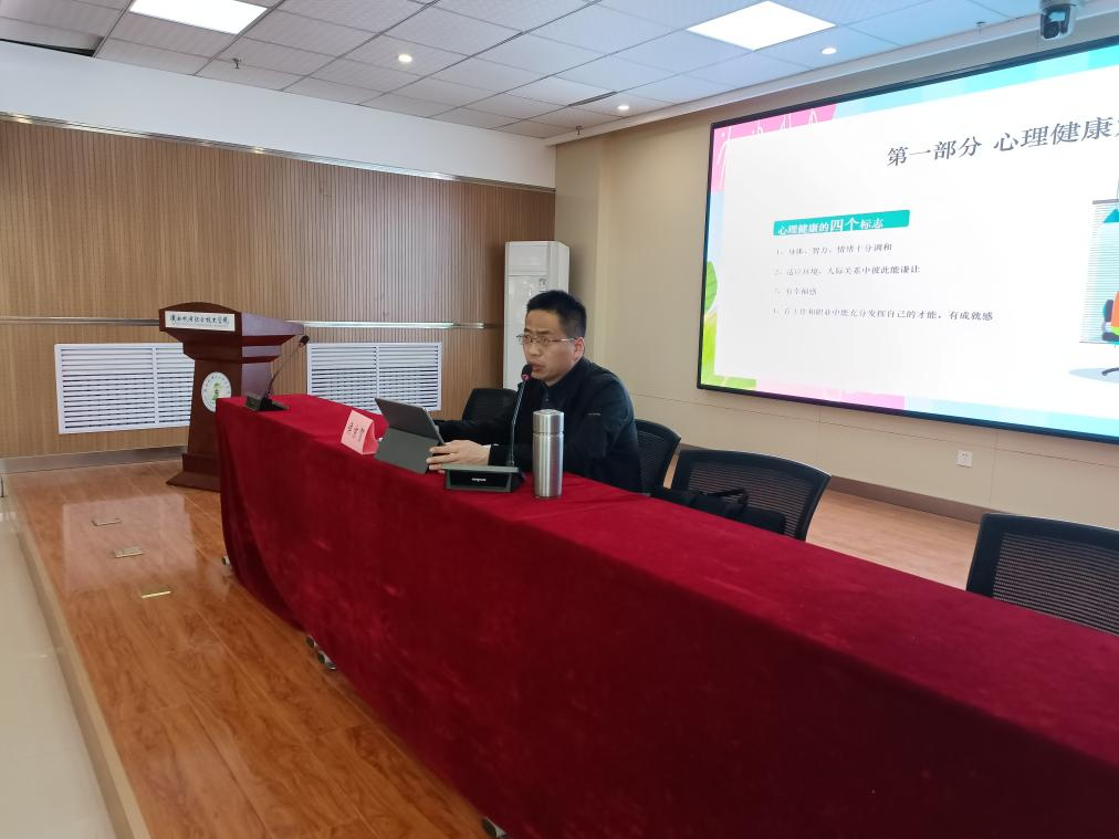 李月阳首先宣读了交通运输学院心理育人宣传季的活动安排,随后侯京贺为大家做了心理健康教育方面的知识讲座,从心理健康定义、大学生心理健康现状、缓解心理压力的办法、送给大学生的忠告和心理趣味小测验等五个方面为同学们进行详细讲授,并分享了五个真实的案例以助于同学们更直观的了解大学生心理健康问题。