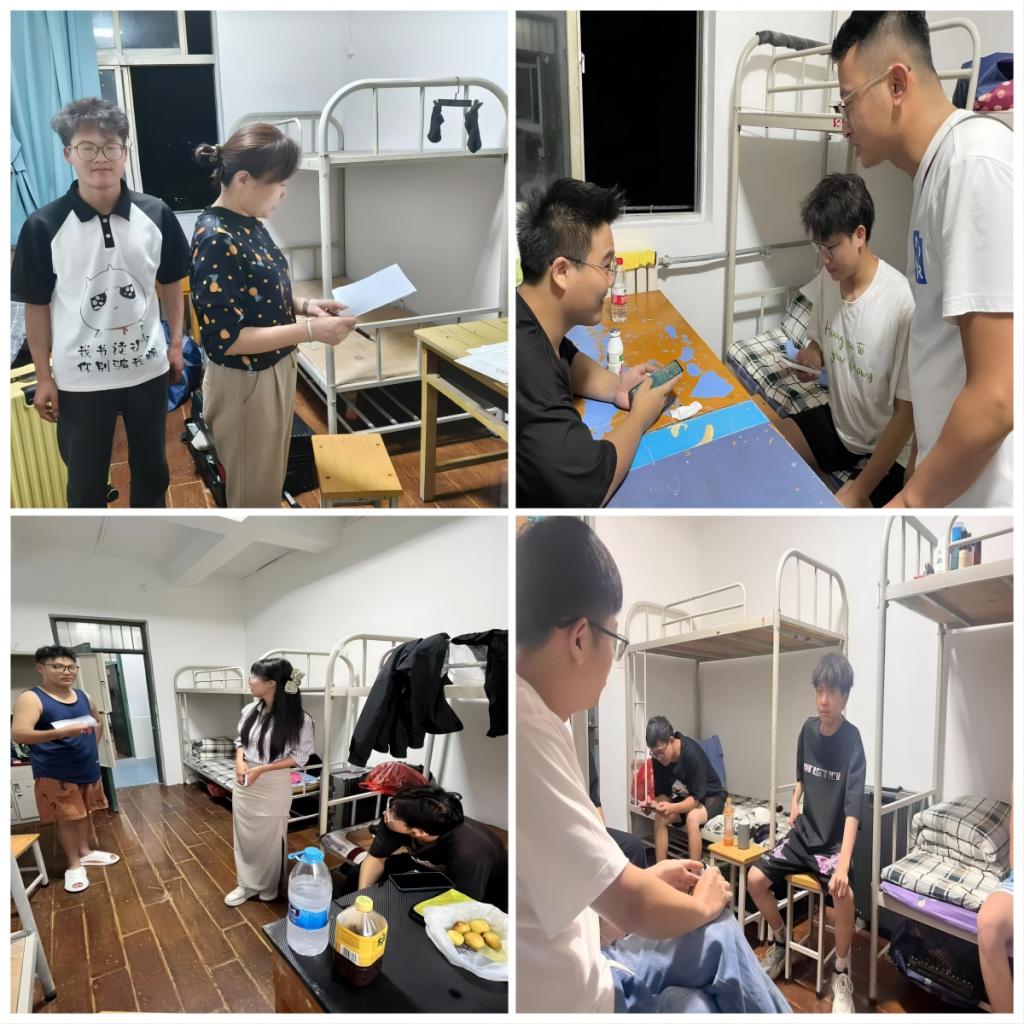 学院领导及各新生辅导员、班主任逐一走访了每一间新生宿舍。走访中,老师们与同学们进行了亲切而深入的交流,了解了新生们的家乡生活习俗和入校后是否适应新环境、遇到的困惑等问题,鼓励同学们积极调整心态,早日适应大学生活,并融入这个充满活力的新集体。同时,院领导和老师们提醒新生提高安全意识,不在宿舍使用违规电器,时刻注意防火、防盗和防网络诈骗,确保自身人身安全和财产安全。