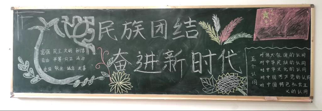 活动期间,各班级同学积极参与,围绕“铸牢中华民族共同体意识”这一核心主题,通过精心设计的黑板报展示了中华民族的悠久历史和灿烂文化。每幅黑板报不仅色彩斑斓、图文并茂,还深入浅出地介绍了各民族风俗习惯和文化特色,体现了同学们对民族文化的深刻理解和尊重。