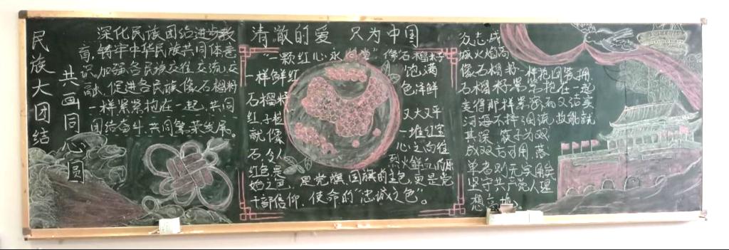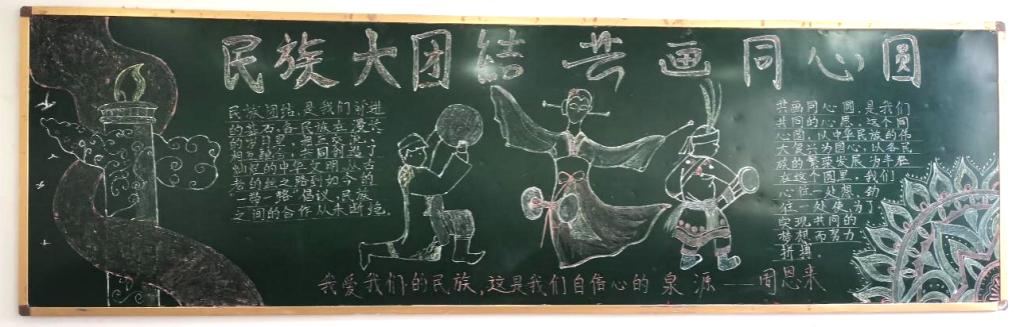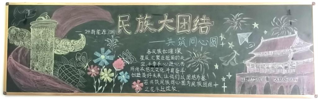 为进一步学习贯彻习近平总书记关于加强和改进民族工作的重要思想,深入开展“石榴籽一家亲”活动,交通运输学院于第八周在各班级开展了“民族大团结 共画同心圆”主题黑板报活动。本次活动旨在教育引导全院学生增强民族团结意识,铸牢中华民族共同体。