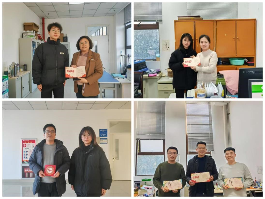 活动正式开始,使者们有序前往老师办公室,礼貌进门、热情问候后,依次送上贺卡。他们向老师表达敬意,邀请老师拆阅贺卡,洋溢着感恩氛围。同时还留下了珍贵合影。送卡仪式高效进行,随后使者与师生自由交流,收集反馈建议,增进彼此了解。