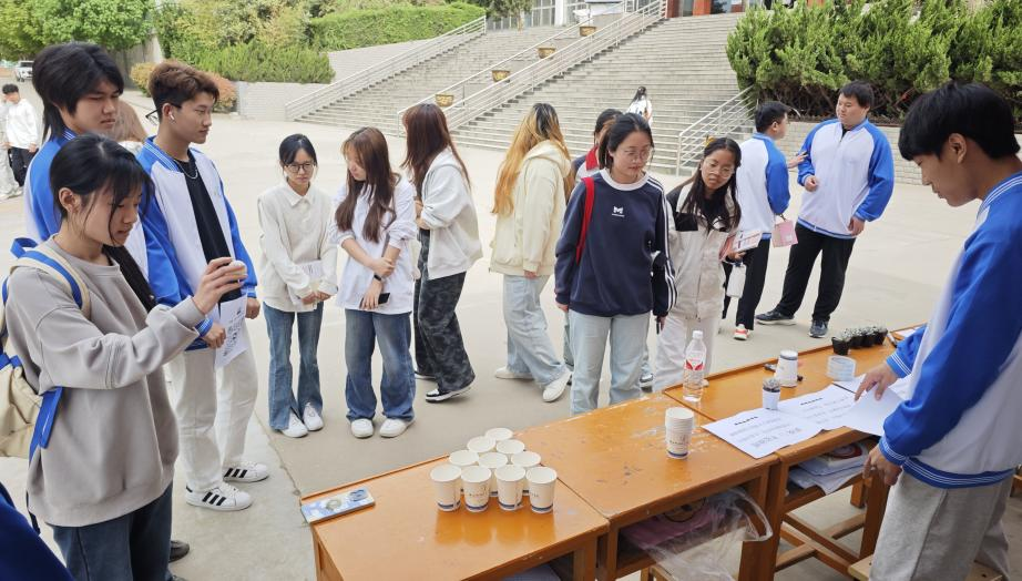 游戏环节设计新颖,极具挑战性与趣味性。在“环保知识问答”中,参与者需要快速准确地回答环保知识问题,不仅考验知识储备,还检验了临场反应能力。“杯底抽纸”游戏则要求同学们在不打翻杯子的前提下,快速抽出杯底纸巾,锻炼了大家的手眼协调能力与耐心。而“弹球进杯挑战”最为吸睛,同学们需在规定距离外,将弹球成功弹入杯子,这一游戏考验着力度与角度的把控,围观同学不时发出阵阵惊叹与加油声。