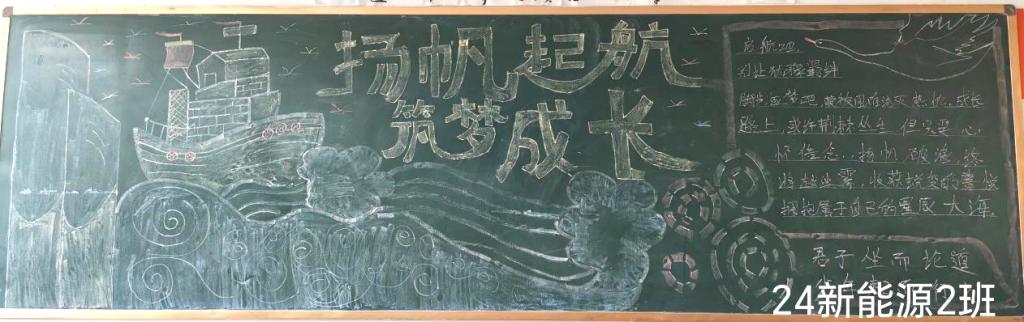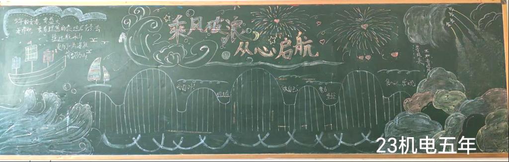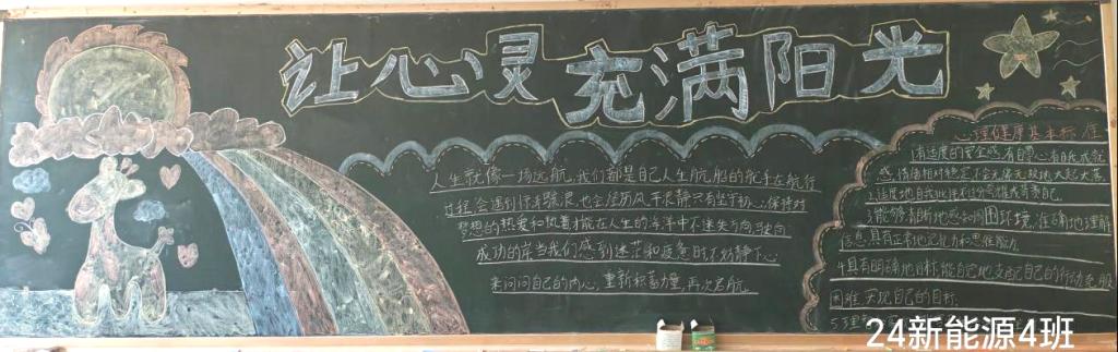 为了培育学生自尊自信、理性平和、阳光向上的积极心态,汇聚心理健康教育育人合力,交通运输学院于4月14日至22日组织开展了“乘风破浪,从心启航”主题黑板报活动。全院在校班级积极参与,以创意与协作共同打造了一场视觉与心灵的双重盛宴,以下是优秀黑板报展示。