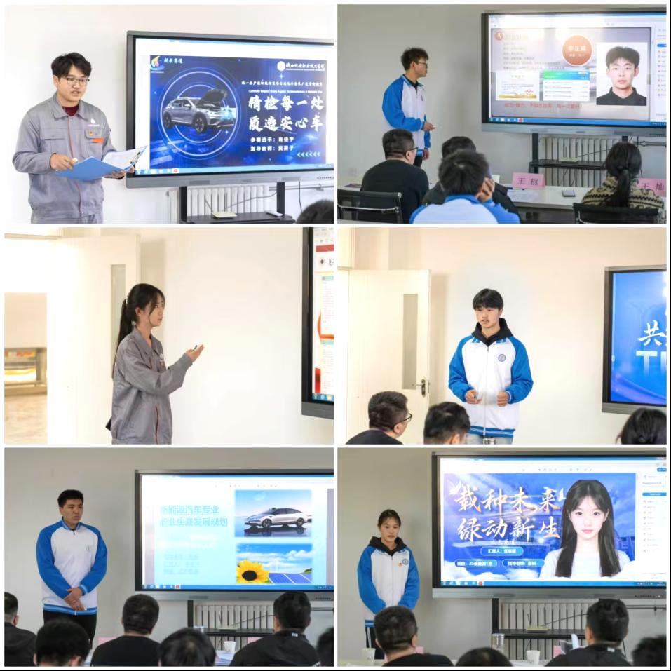 学院领导高度重视大赛,多次筹备确保流程细节;班主任动员学生围绕“专业+职业”主题规划;专业教师指导选题和逻辑。经过推荐和初审,30名选手晋级决赛,涵盖多就业方向,提升专业多样性。本次竞赛荣幸邀请到交通运输学院院长李靖、交通运输学院党支部书记王枢、学校校企合作处综合科科长王博、学生办公室主任董妍、校团委干事王灿、新能源系专任教师黄振子和汽车检修系专任教师刘翔等七位老师担任评委。